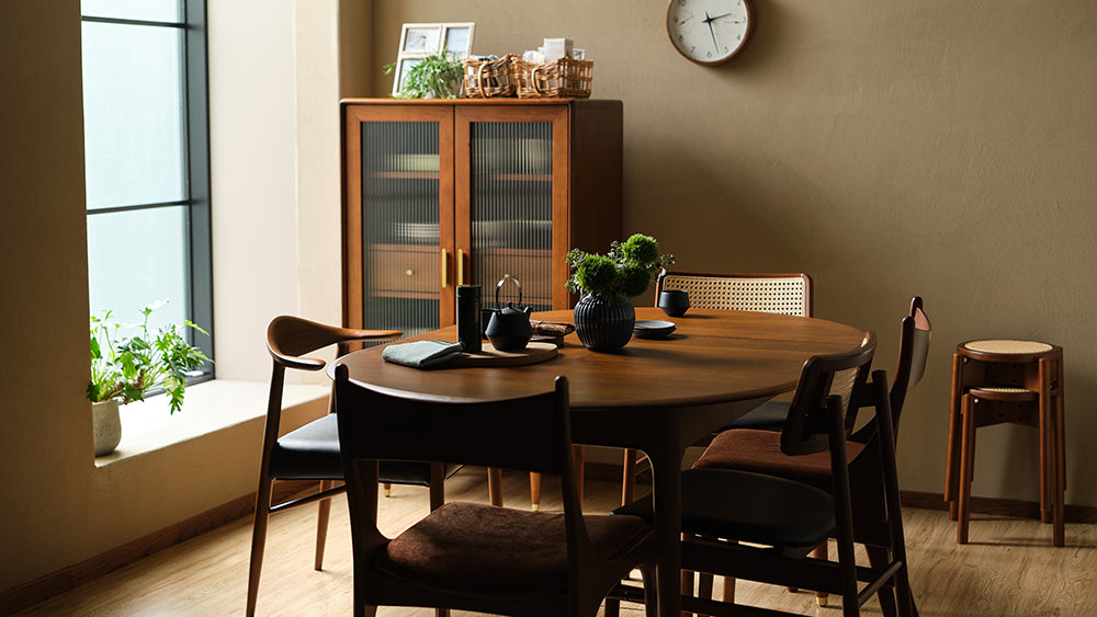 河野さんによる、エクリュクスの深みのあるブラウンの家具を組み合わせたダイニングシーンのスタイリング、いかがでしたでしょうか。若い人が暮らすマニッシュでスタイリッシュな空間にも、シニアが寛ぐ落ち着きのある空間にも寄り添う、スタイルを問わず、幅広い年代に向けて長く使えるおすすめの家具です。