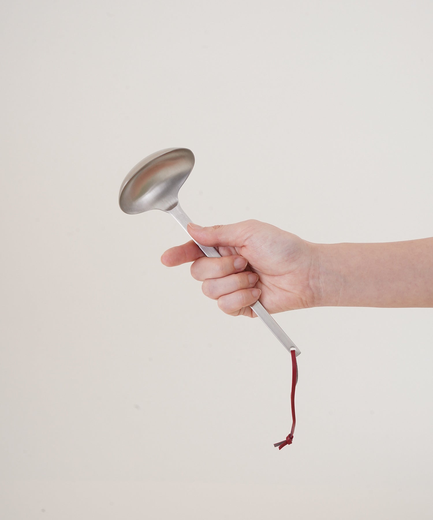 シンプルで使い勝手がよく、曲線のデザインが美しいステンレス製のお玉。