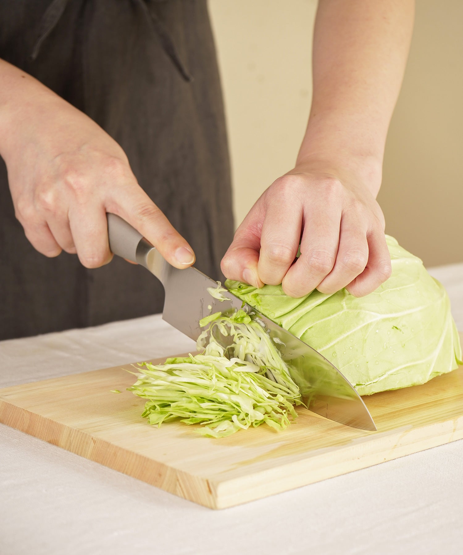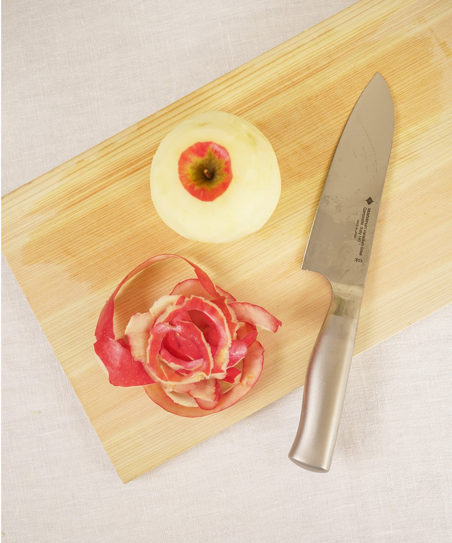 従来の菜切りや牛刀等の形状にとらわれず、使いやすさを追求したシンプルで飽きの来ないスタイルのキッチンナイフ。
