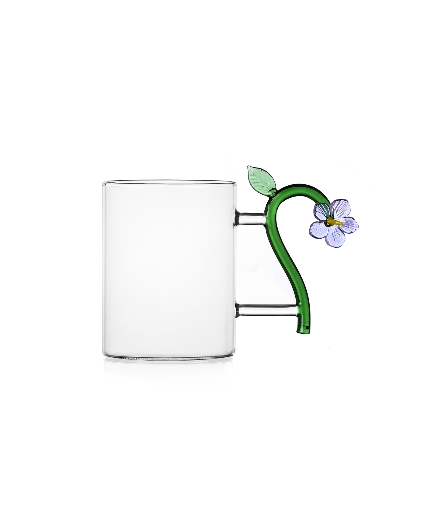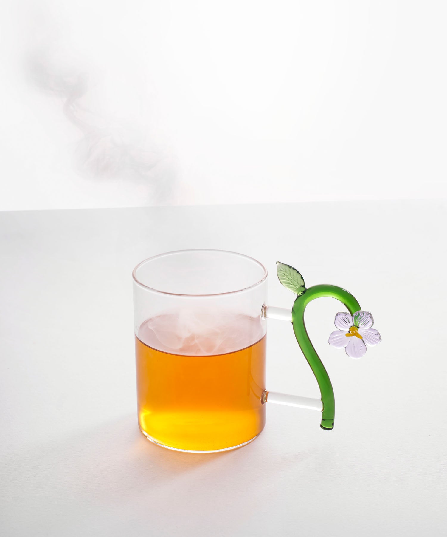 取っ手部分に美しいお花のデザインを施した、華やかで上品なマグカップ。