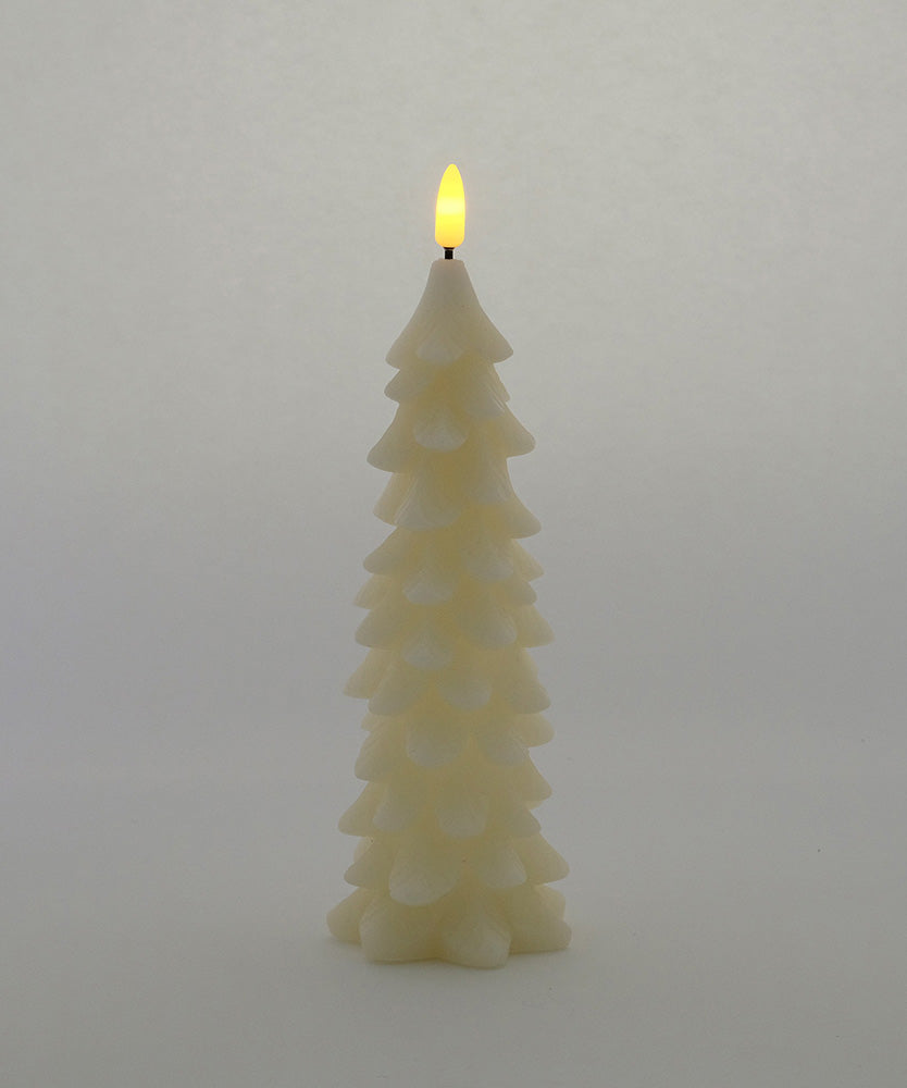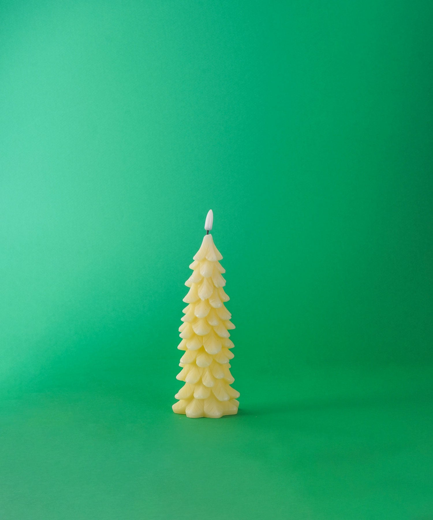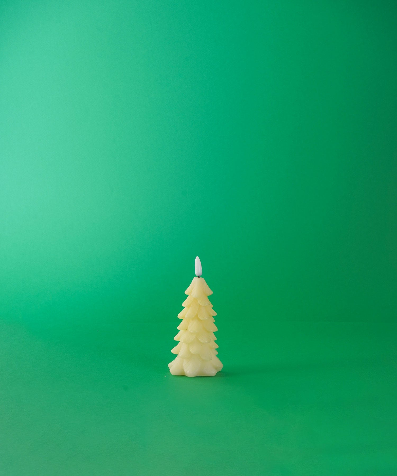 まるで本物のモミの木のような形状のワックス製LEDキャンドル。