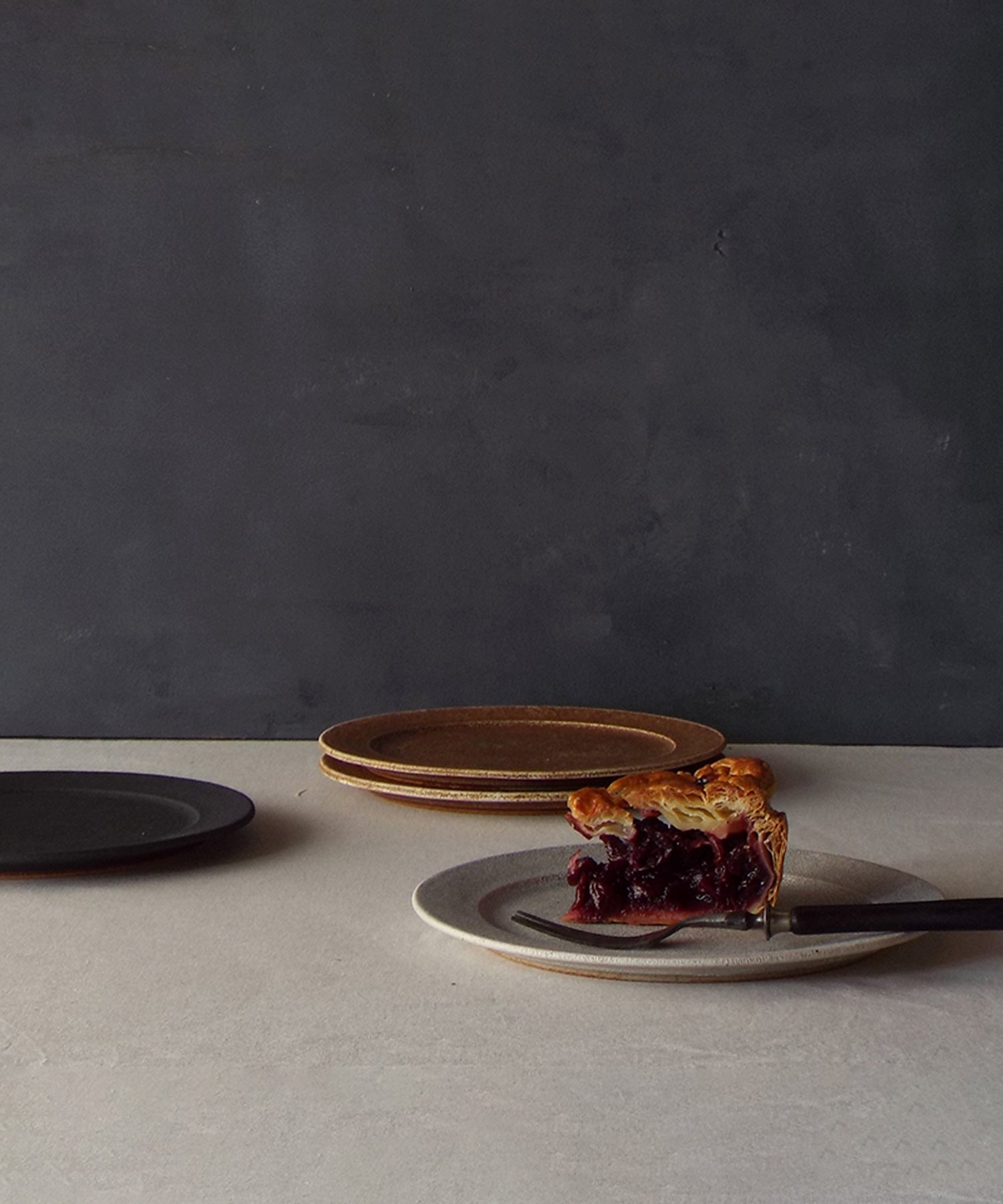 「fractal」シリーズは、700年続く美濃の名窯、兵山窯とMISHIM POTTERY CREATIONの共作。プリミティブで力強い梅花皮(かいらぎ)と、クラシカルな西欧の形が調和し、シンプルな曲線の中に静かな力強さを秘めたシリーズです。フラットな形状についたリムのデザインがおしゃれなケーキプレート。一人分のおやつやフルーツを盛り付けるケーキ皿としてはもちろん、取り分け皿にもぴったりなサイズです。どんな素材の料理も魅力を引き立てる質感と色味が特徴で、和洋問わず幅広いシーンで活躍します。ちょっとしたおもてなしにもおすすめです。かいらぎは、使い込むほどに表面に油や色が馴染み、唯一無二の味と風合いが現れます。経年変化を楽しみながら、自分だけの特別な魅力を育ててみてください。