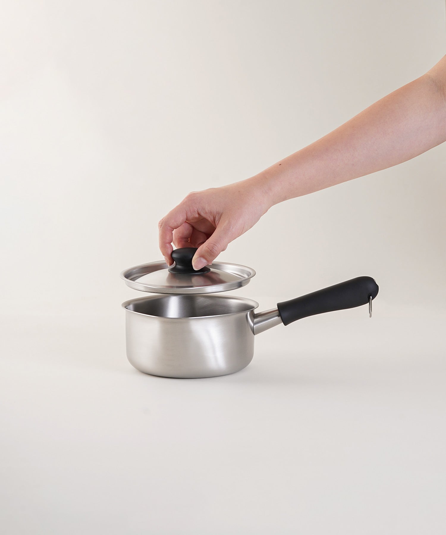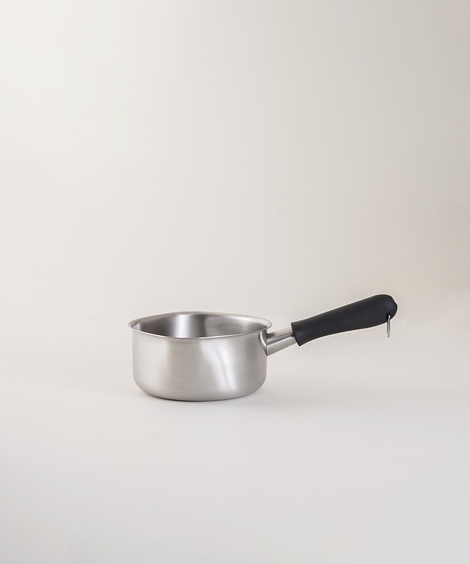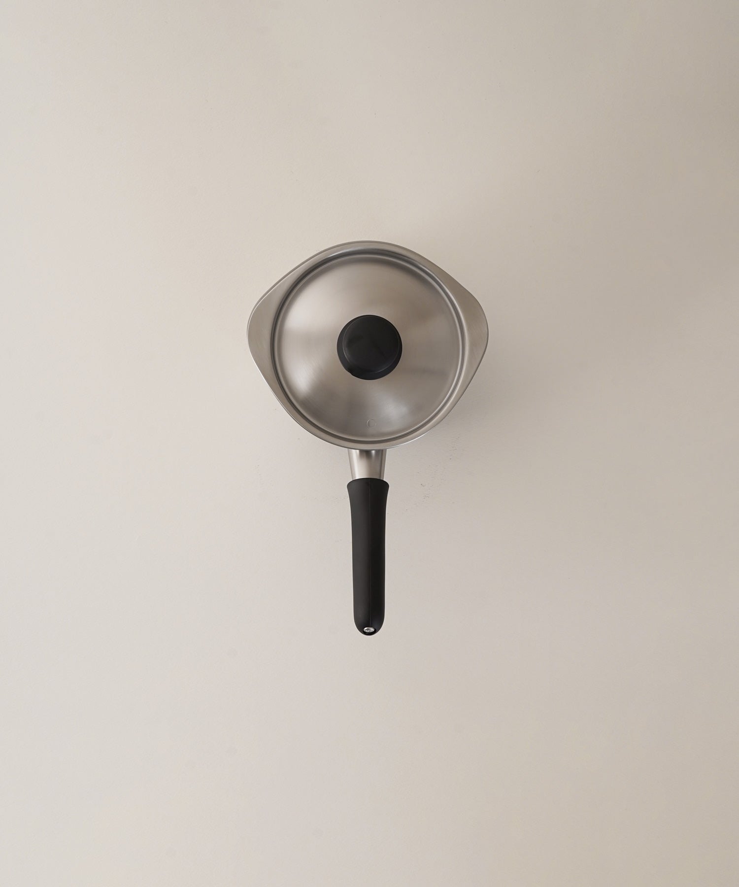 一連の調理動作を研究し、調理したものを移し替える動作から考えられたデザインのミルクパン。「注ぎやすさ」と「きれのよさ」を追求したフォルムです。