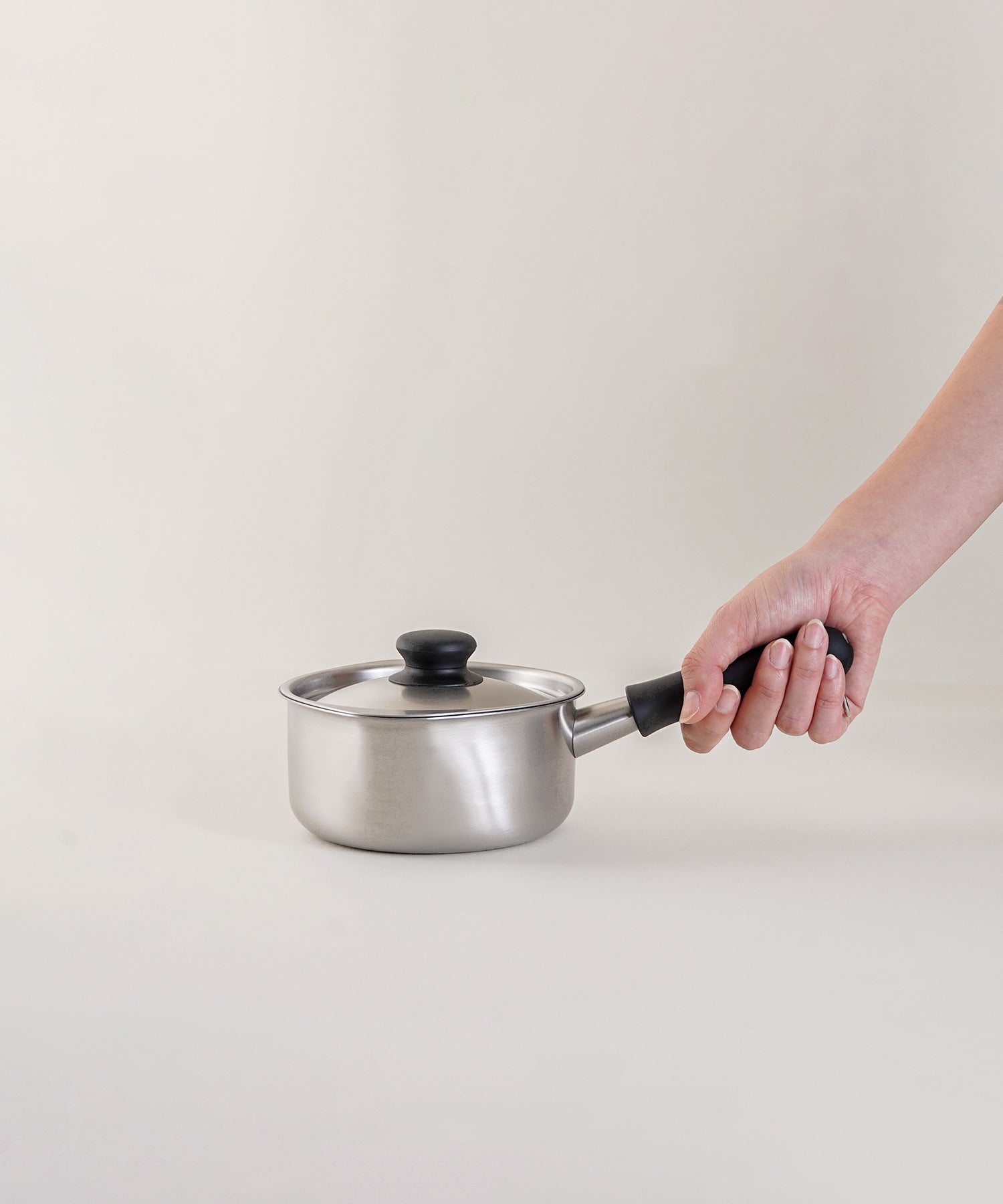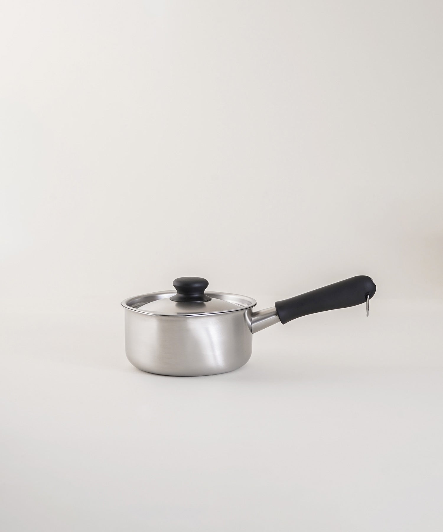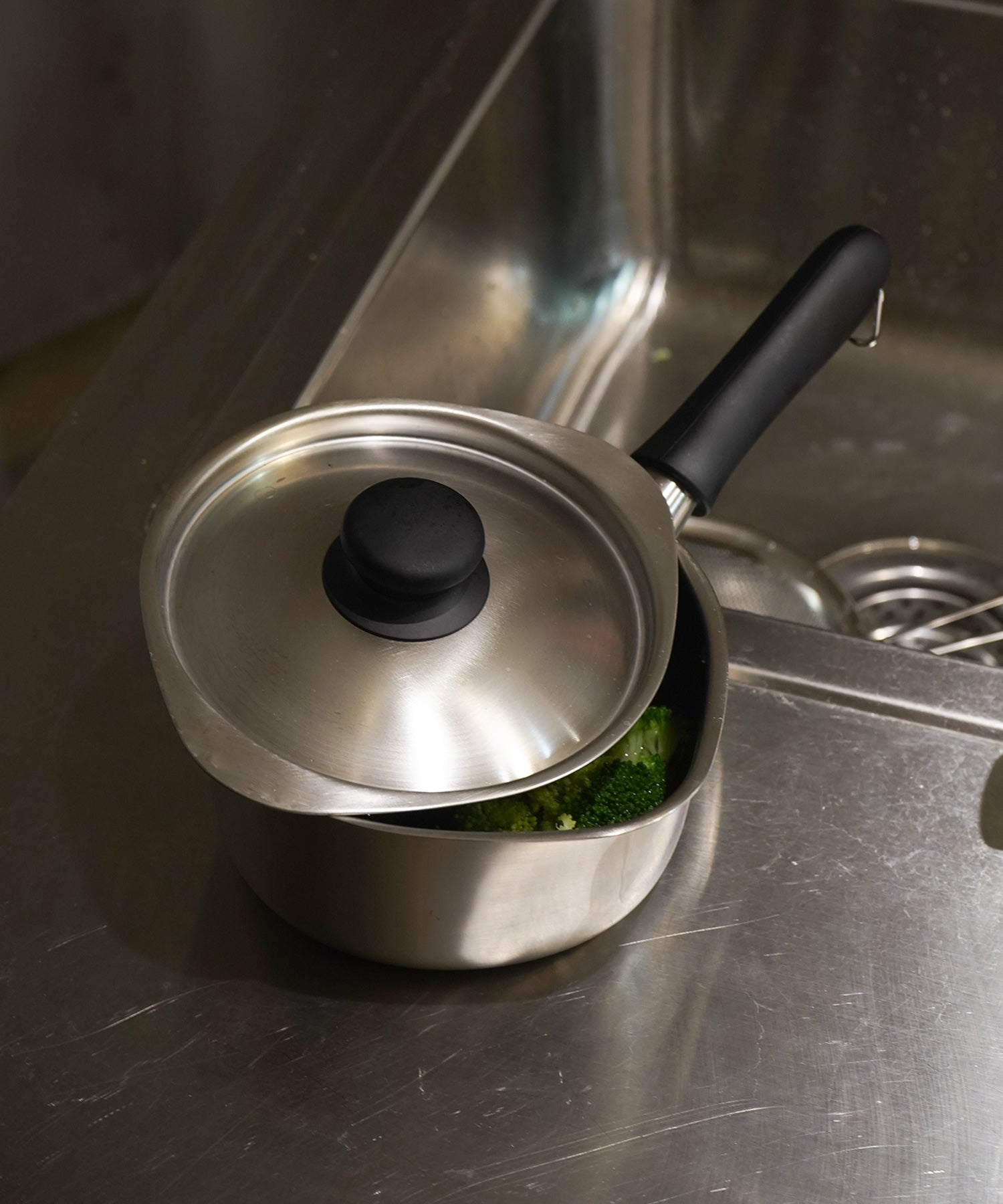 一連の調理動作を研究し、調理したものを移し替える動作から考えられたデザインのミルクパン。「注ぎやすさ」と「きれのよさ」を追求したフォルムです。