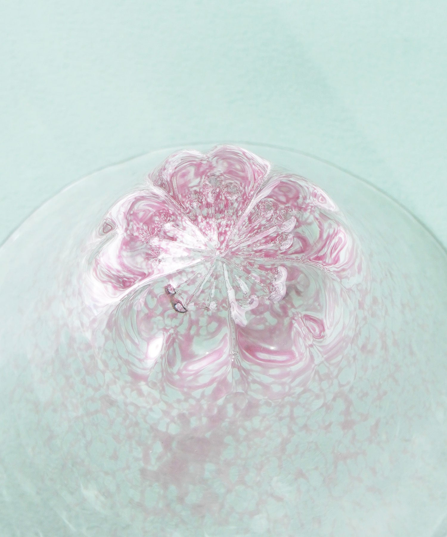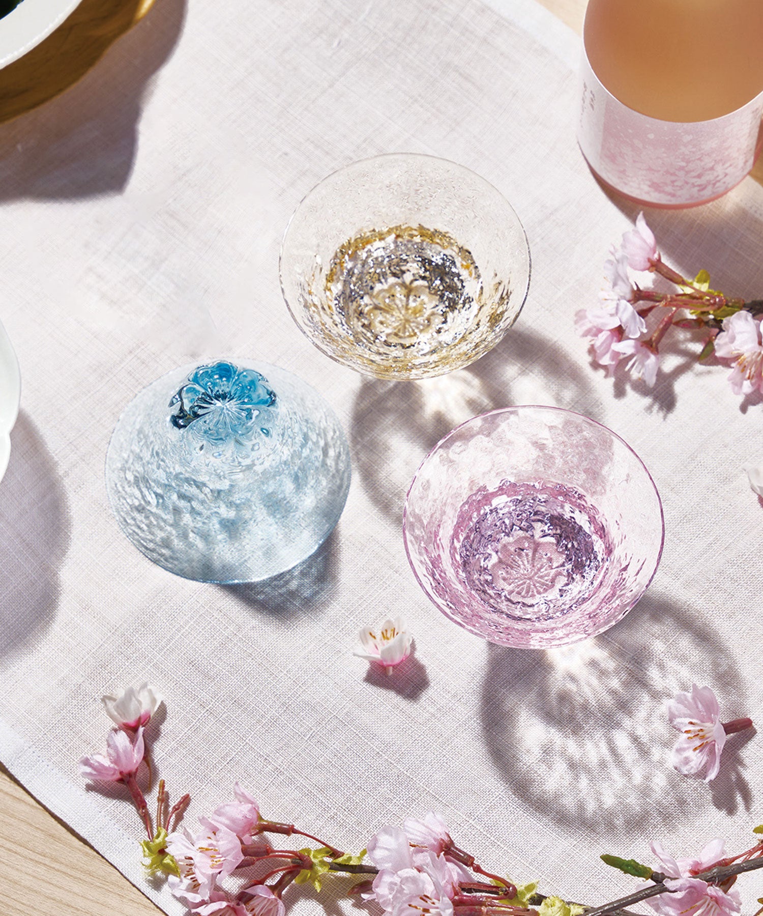 底には桜の花があしらわれ、お酒を注ぐと美しく浮かび上がります。