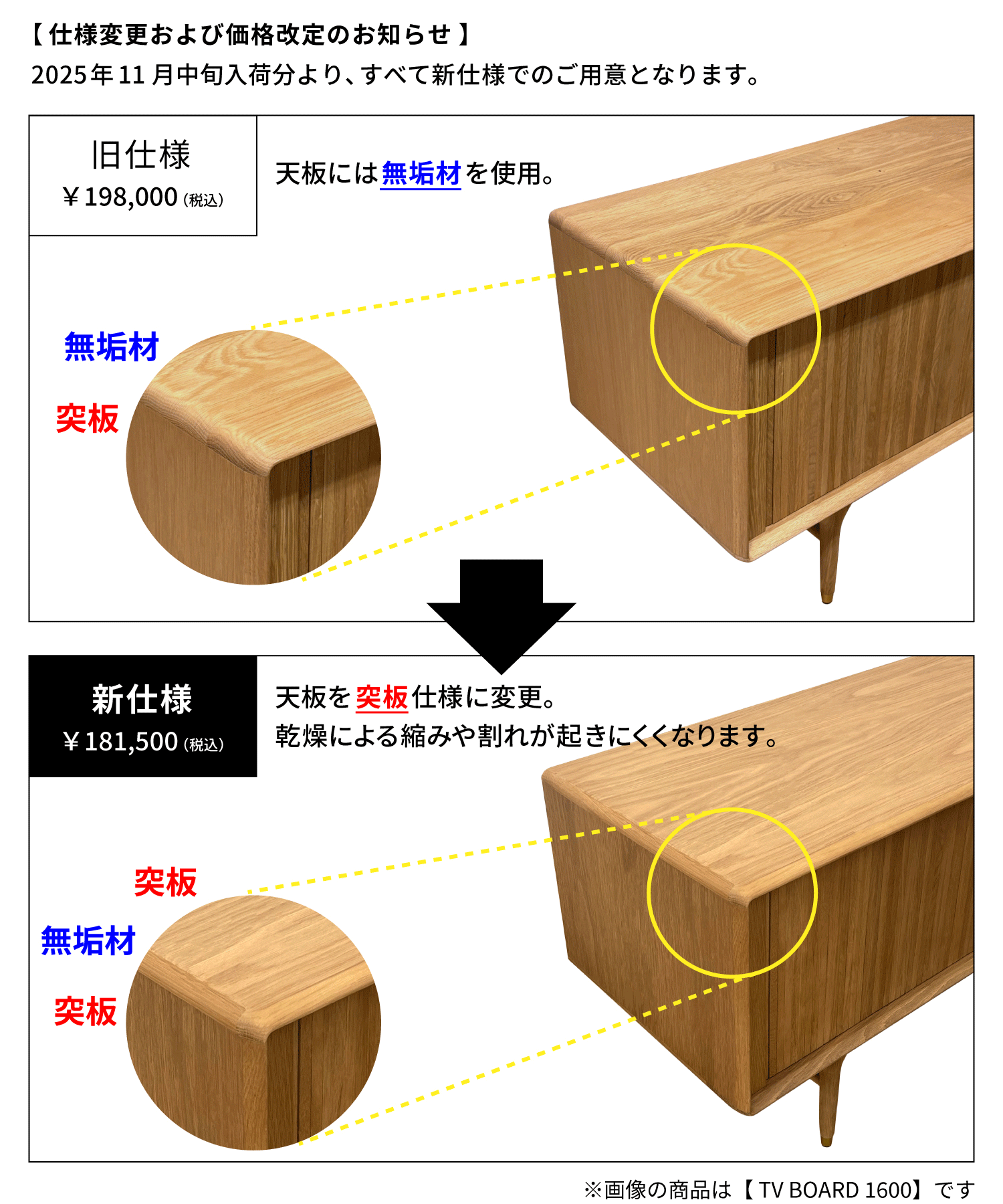 *本商品は、経年による割れや縮み、反りを起きにくくするための仕様変更をいたします。