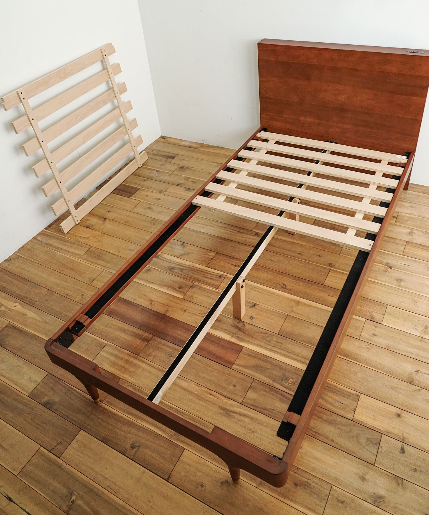 前脚の代わりにヘッドボードを床まで延長したデザインに変更。耐久性もアップしました。