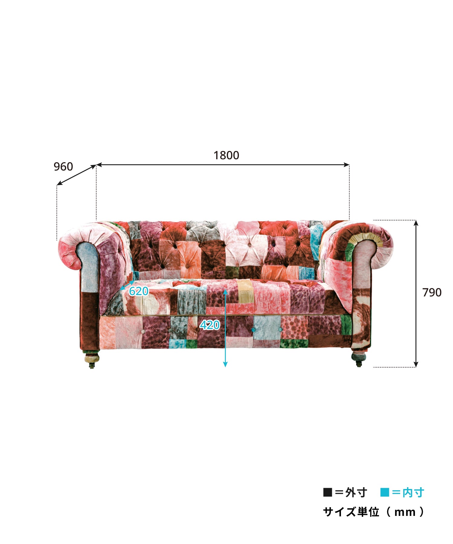 製品:横幅 1800 × 奥行き 960 × 高さ 790 × 座面高 420(mm)