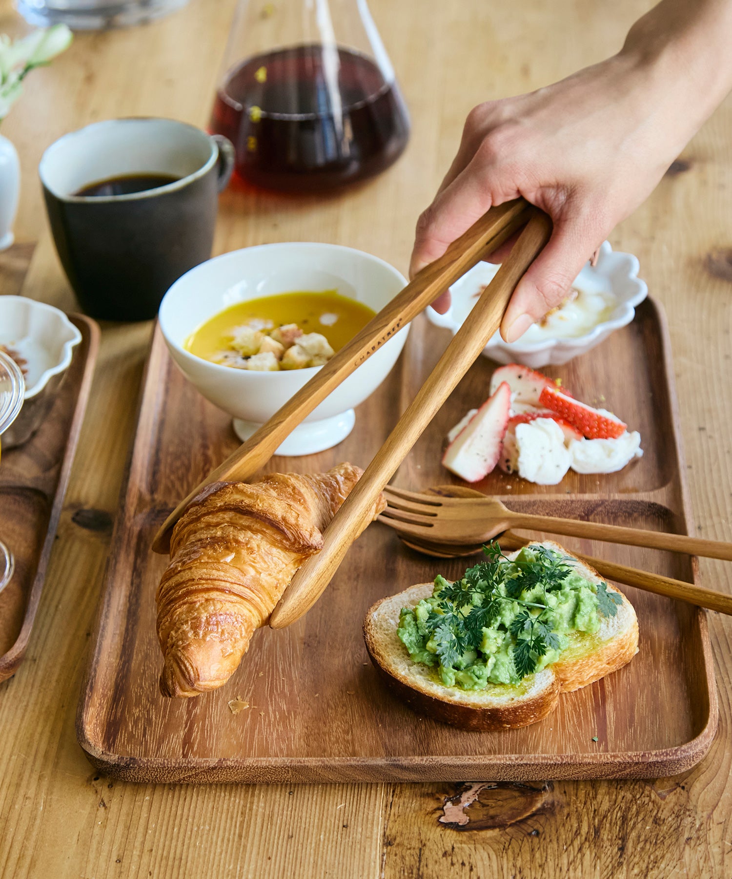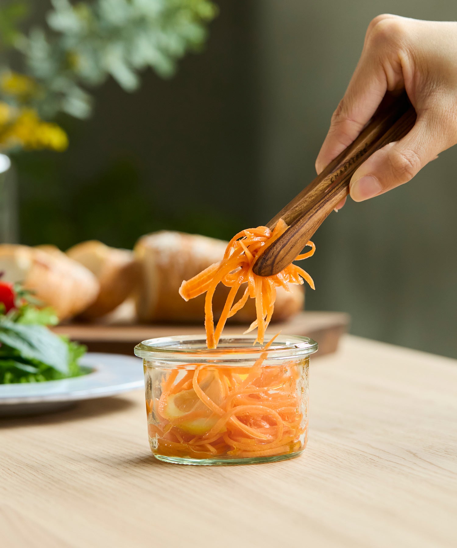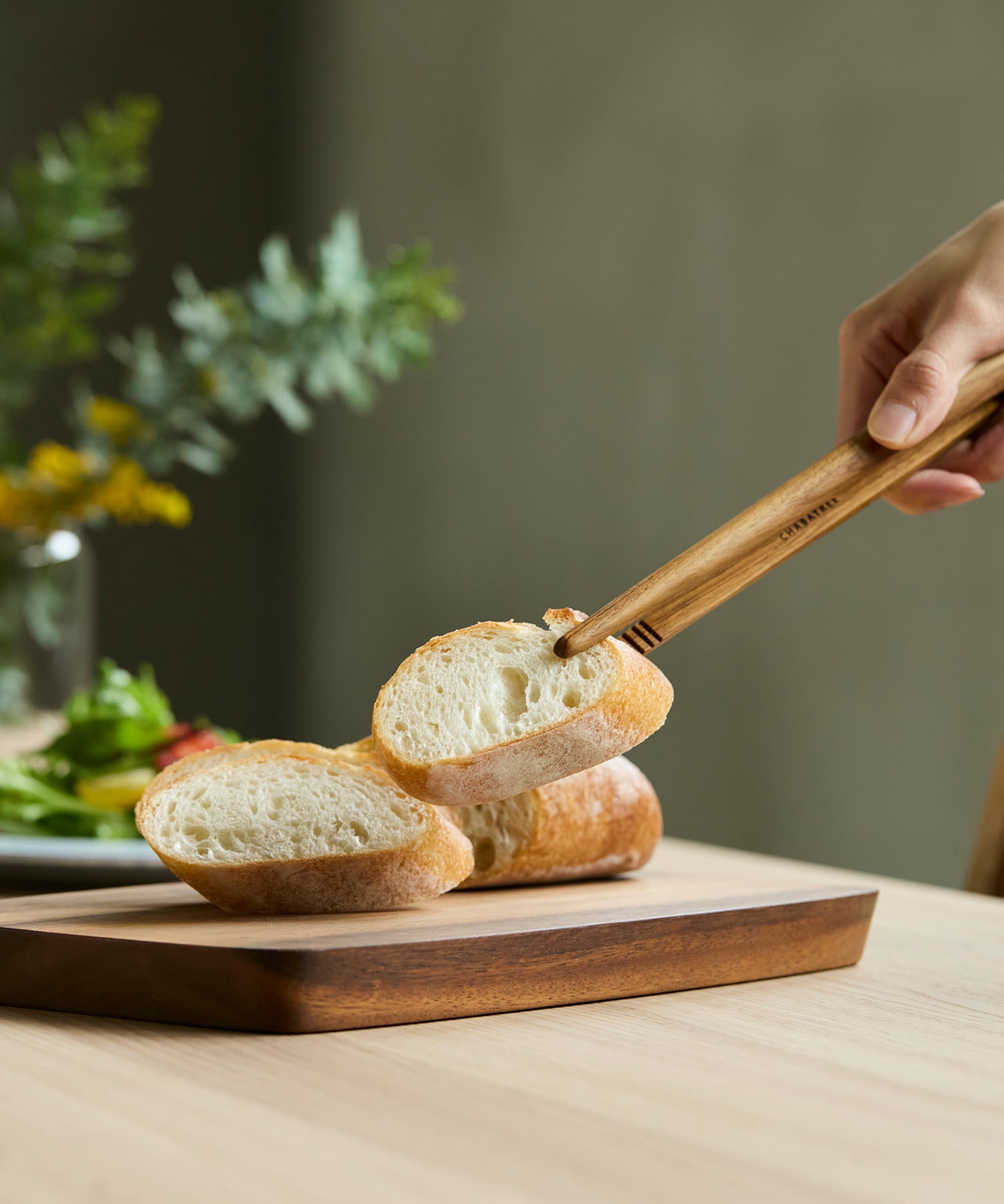 ホーステイルトングは先端が幅広く作られているので、パンやサラダなどをサーブするのにもおすすめ。