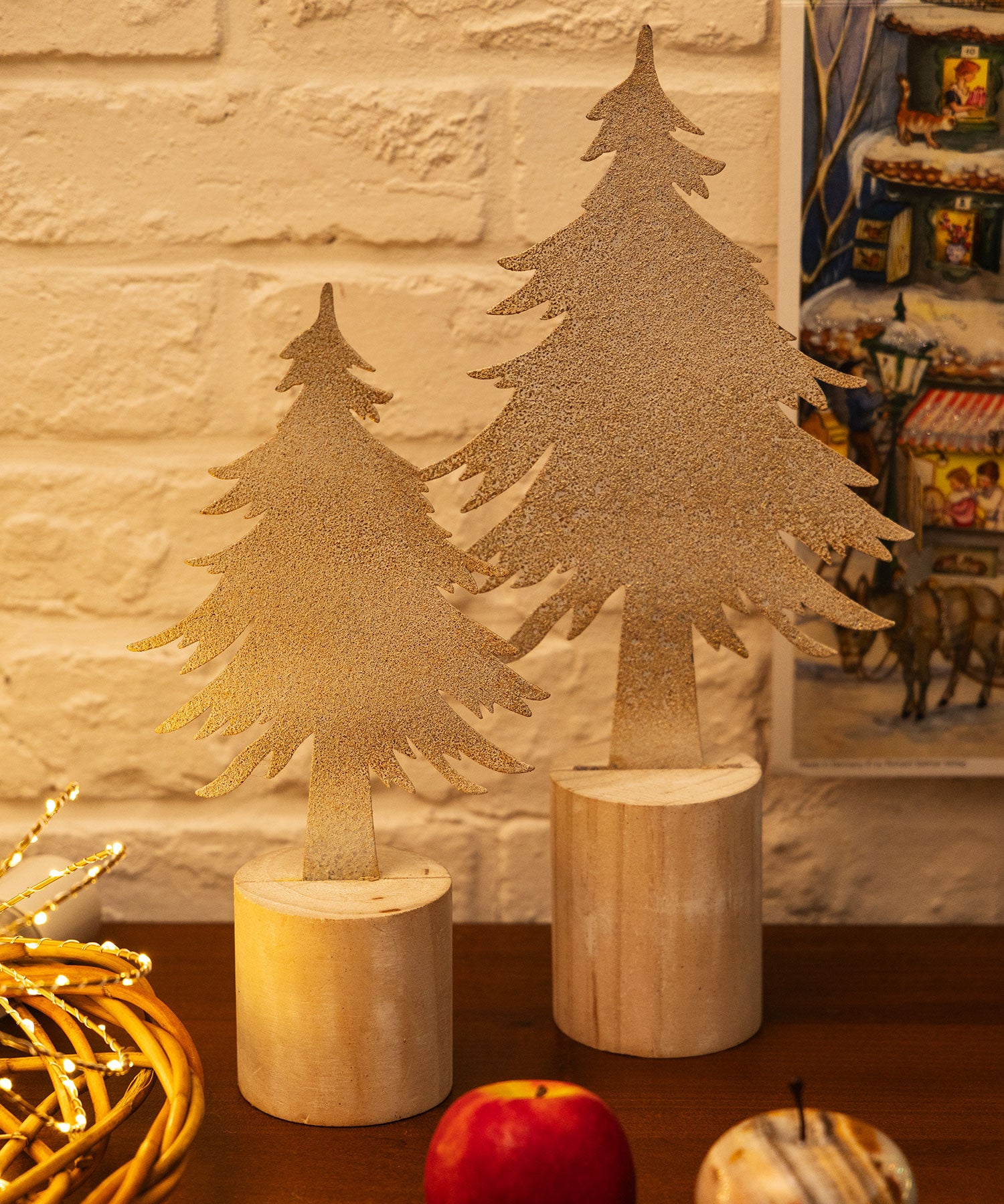もみの木モチーフの白いアイアンプレートに、キラリと光るメタリックなペイントを施したデコレーションツリー。