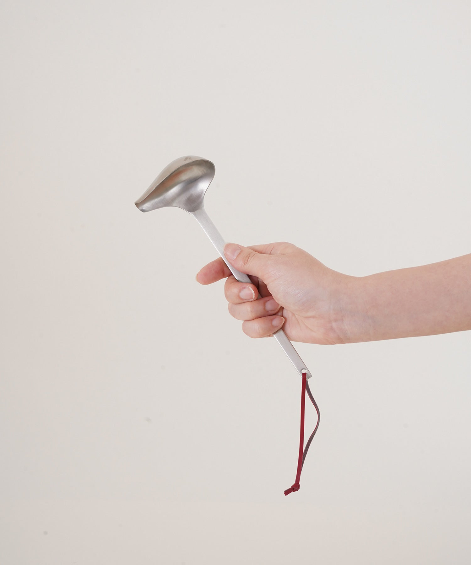 スープやソースを繊細に盛り付けたり、スープジャーや保存容器など口の狭い容器への移し替えに便利な横口タイプのレードル。