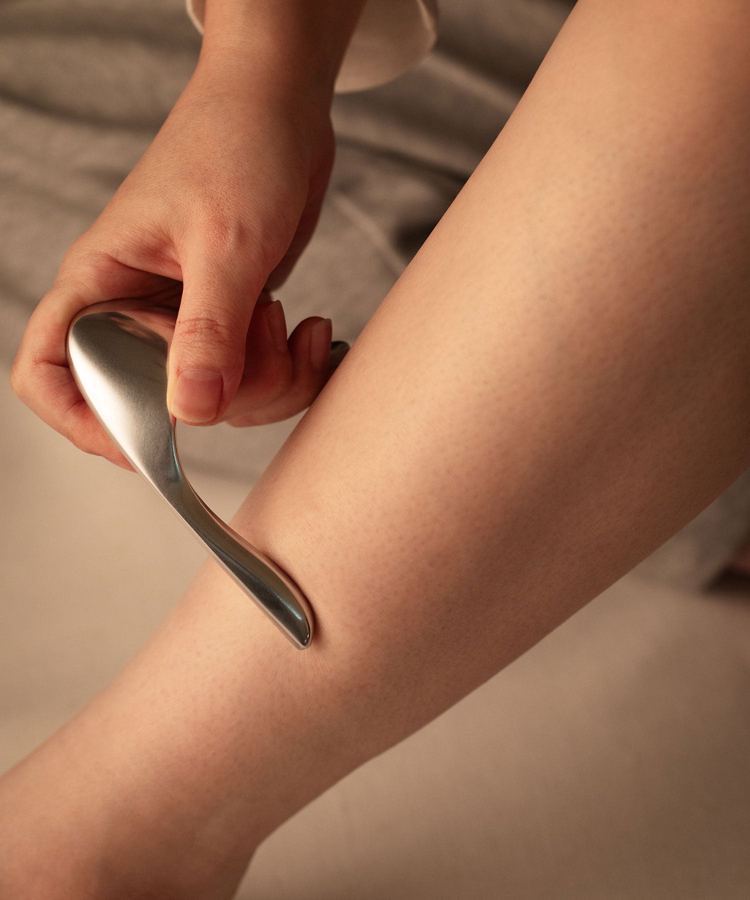 流れるような有機的なラインを持ち、顔や全身に沿うようにフィットするリラクゼーションツール。