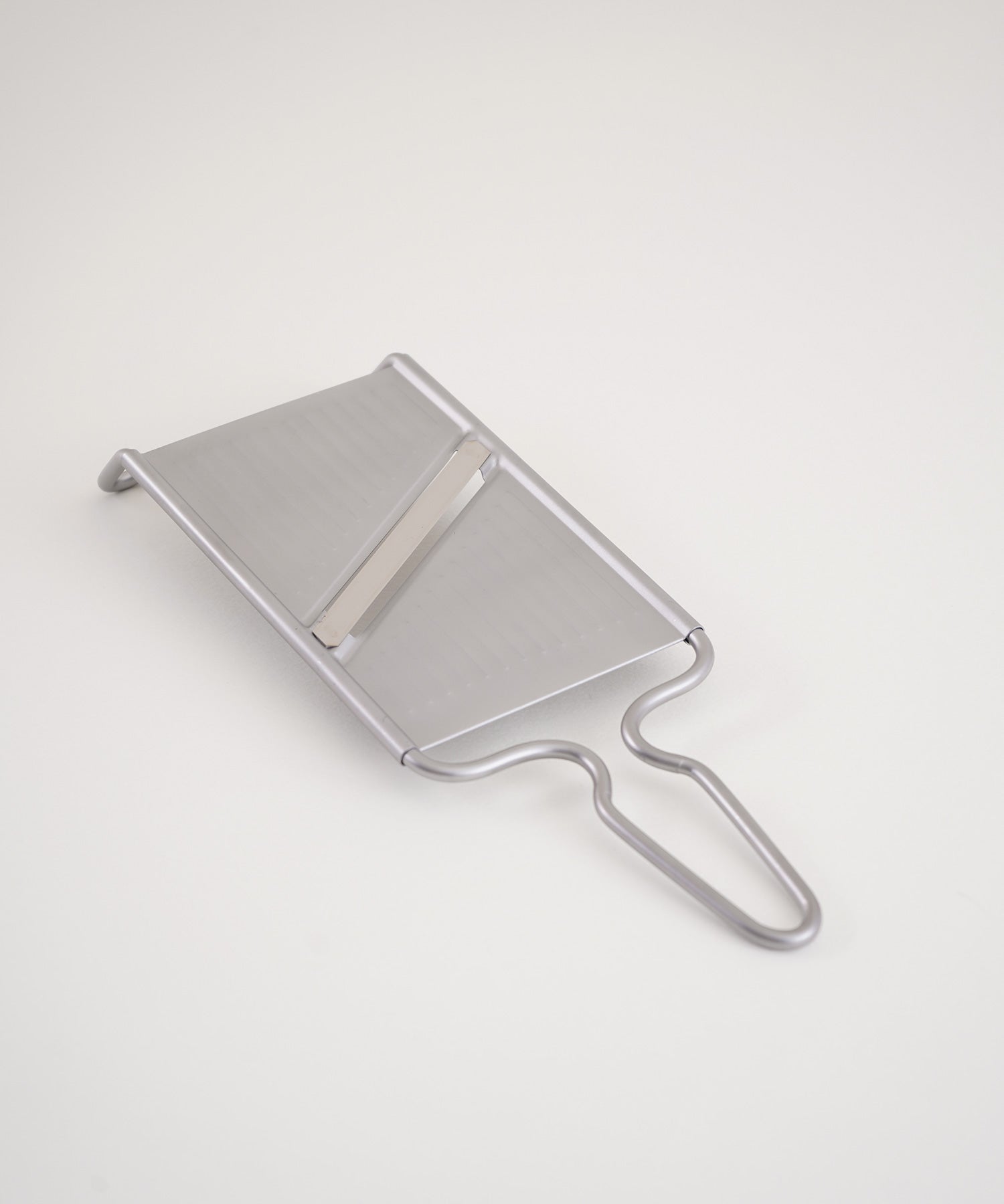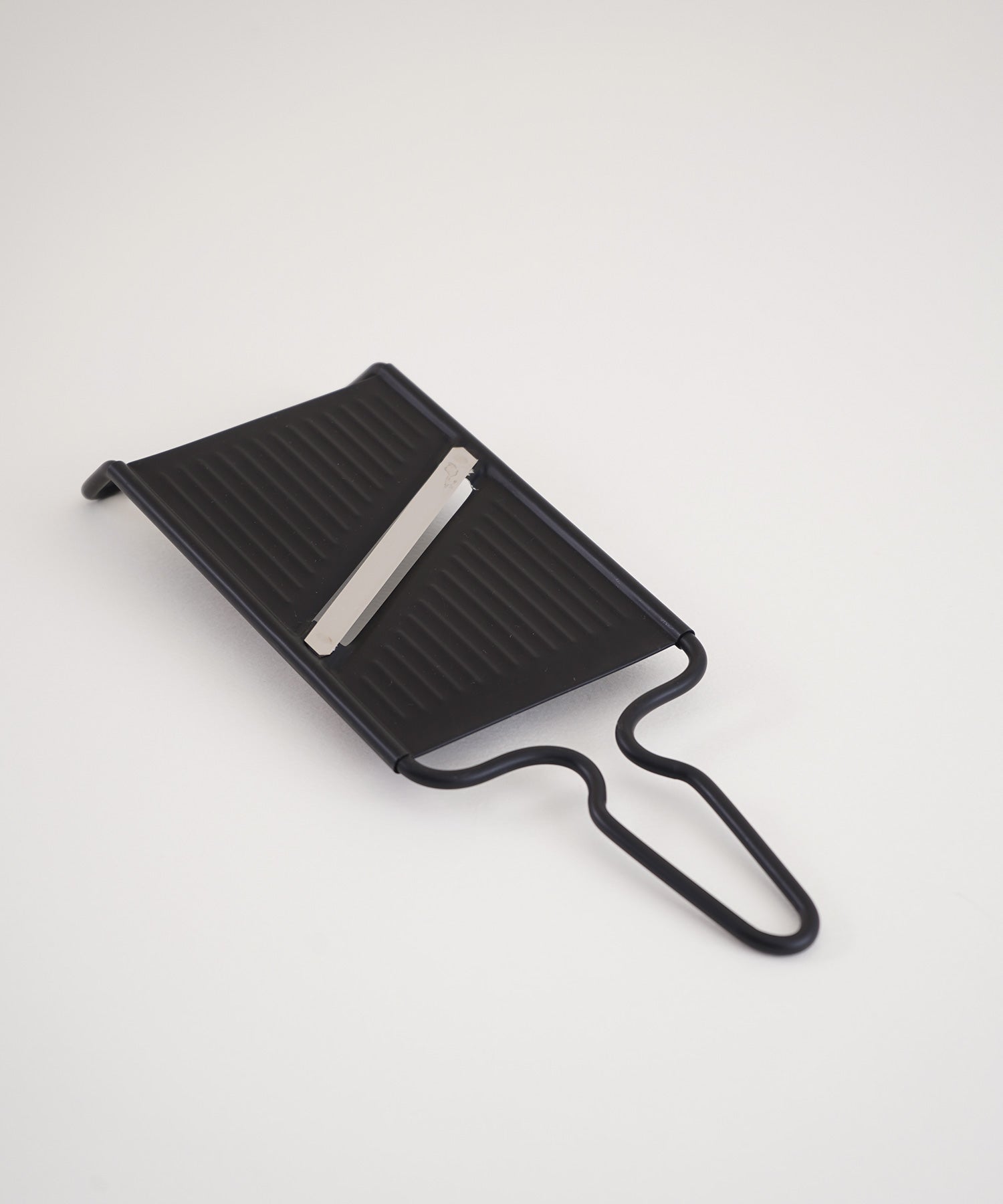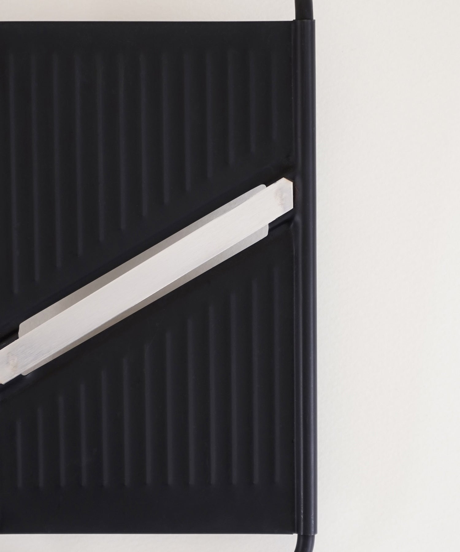 斜めに角度がついた刃は、食材の抵抗を抑えて高速で薄切りにすることができます。