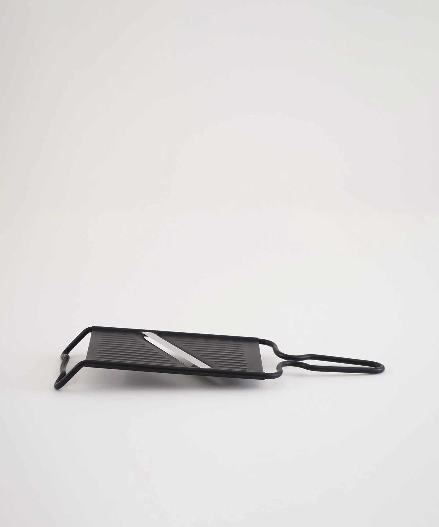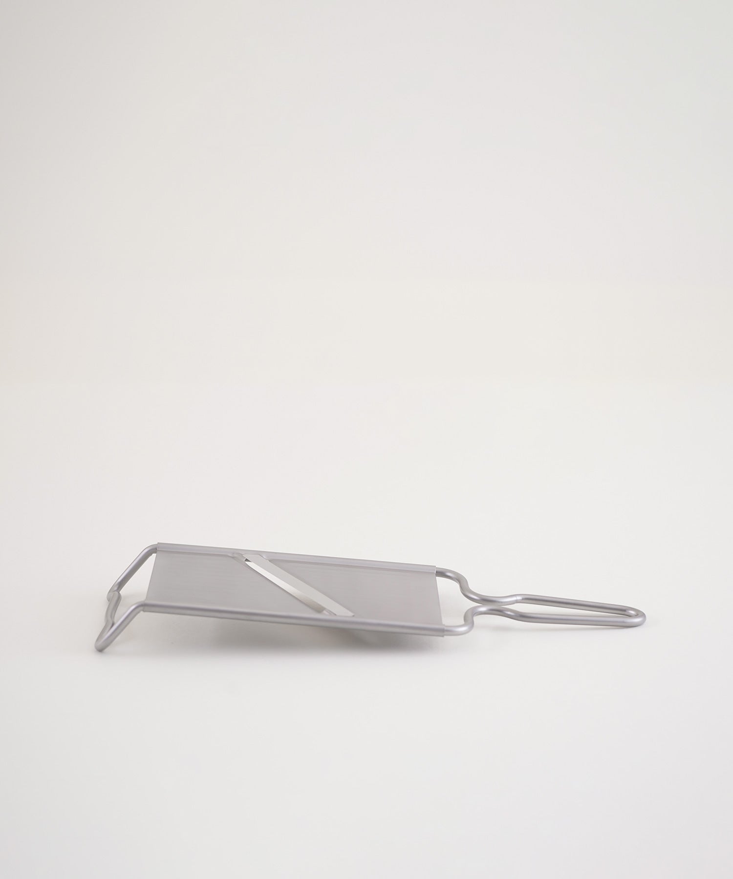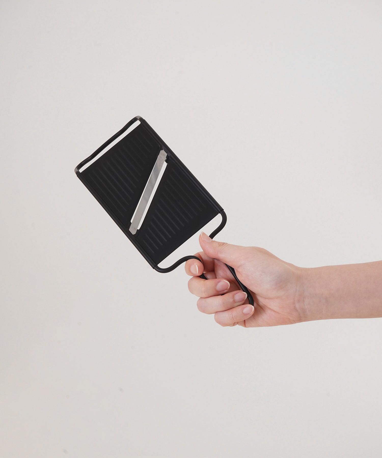 斜めに角度がついた刃は、食材の抵抗を抑えて高速で薄切りにすることができます。