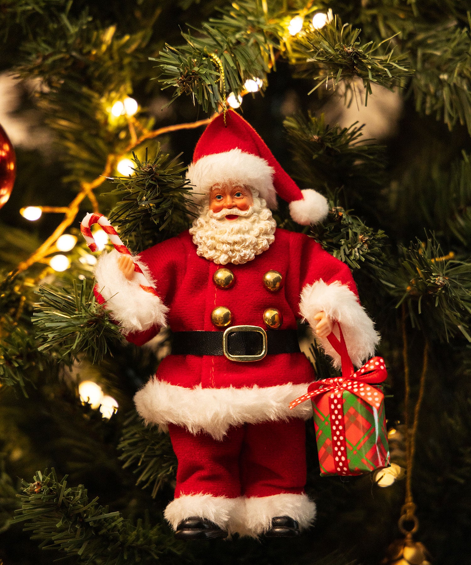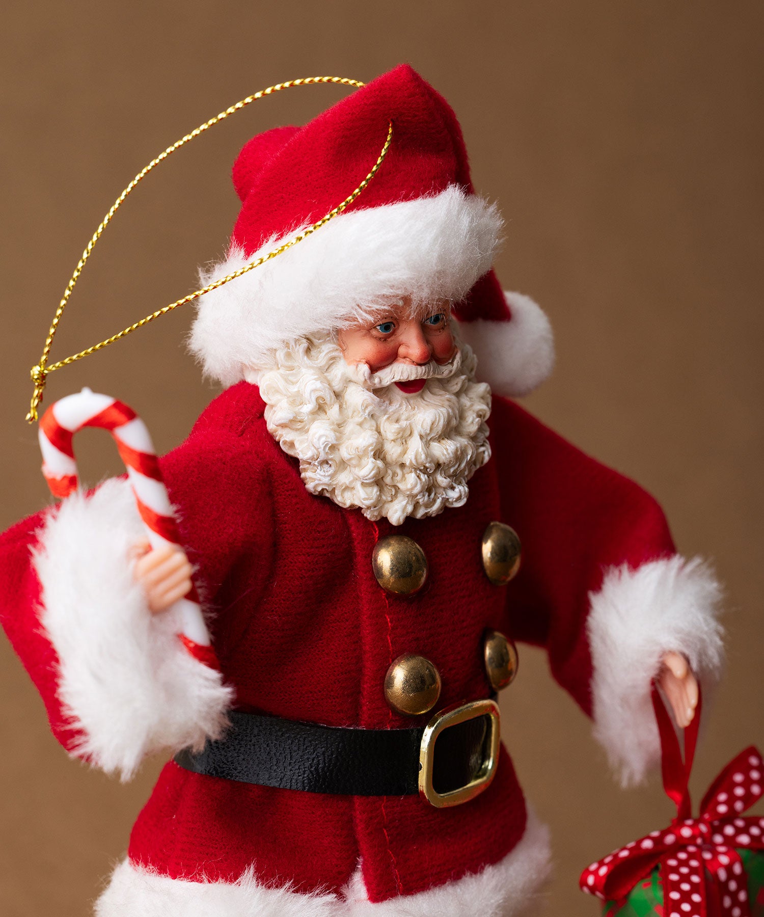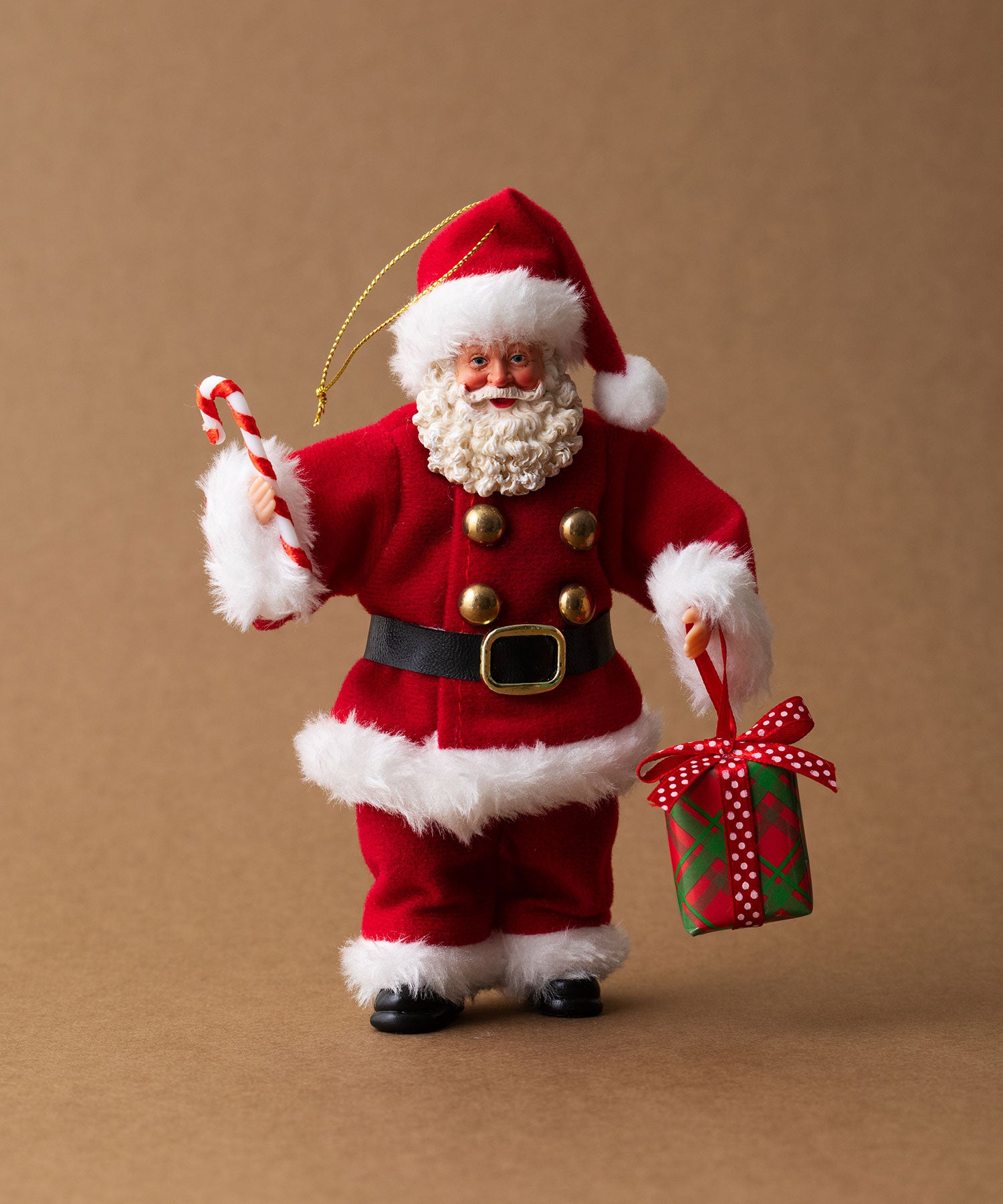 リアルだけどどこかかわいい、絵本から飛び出したようなサンタのオーナメント。