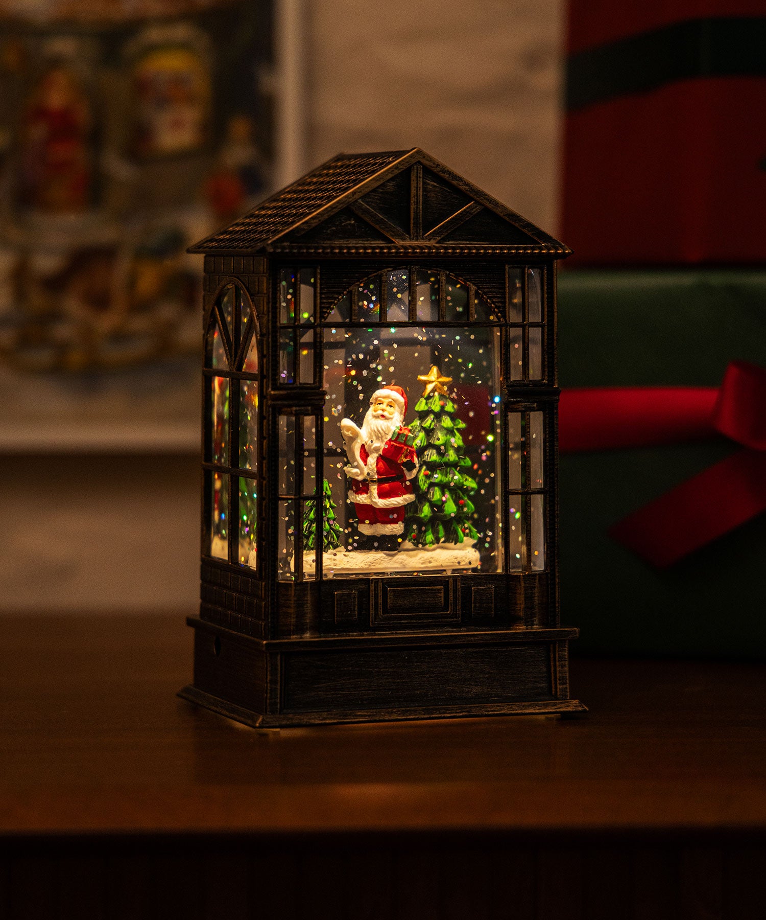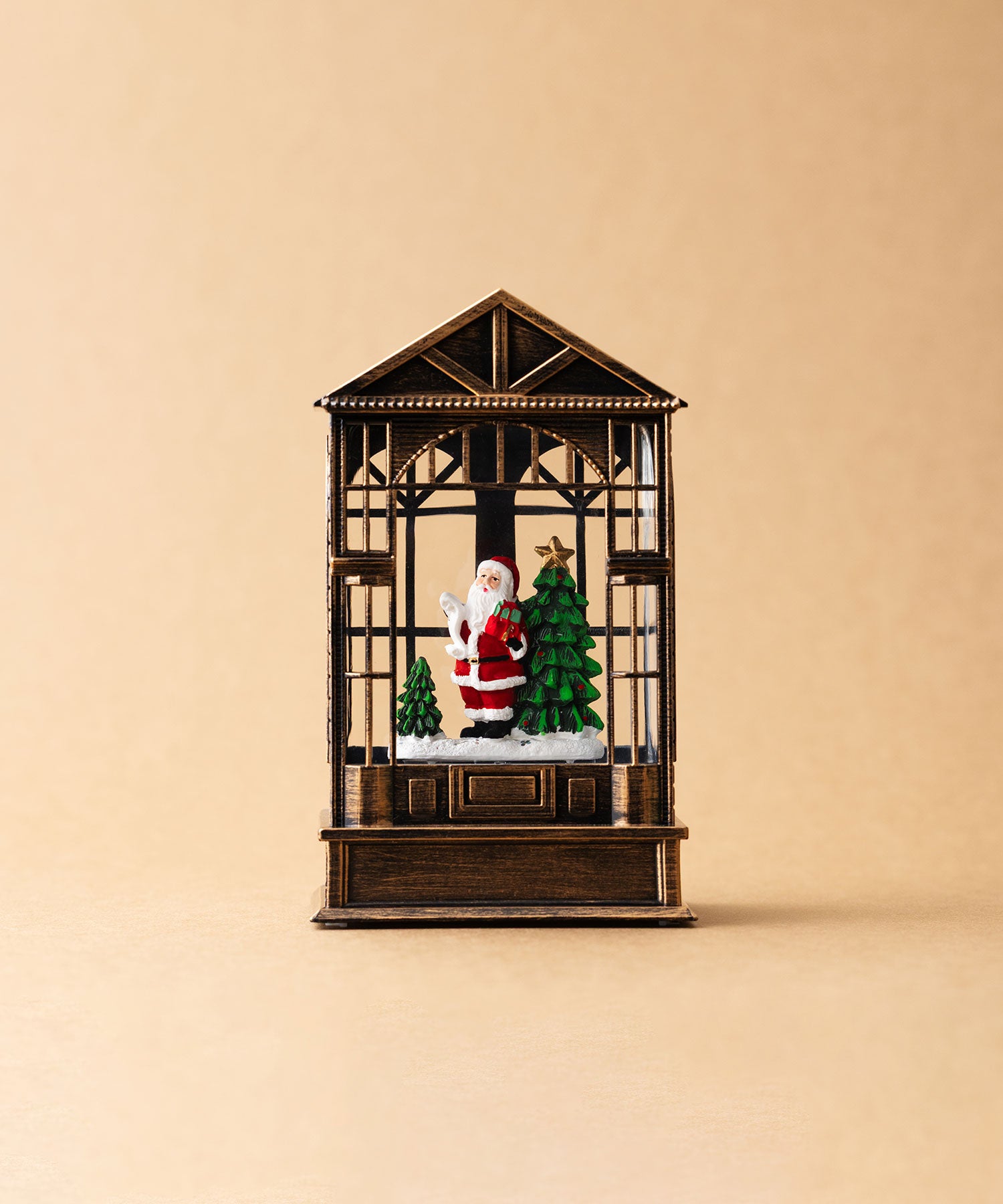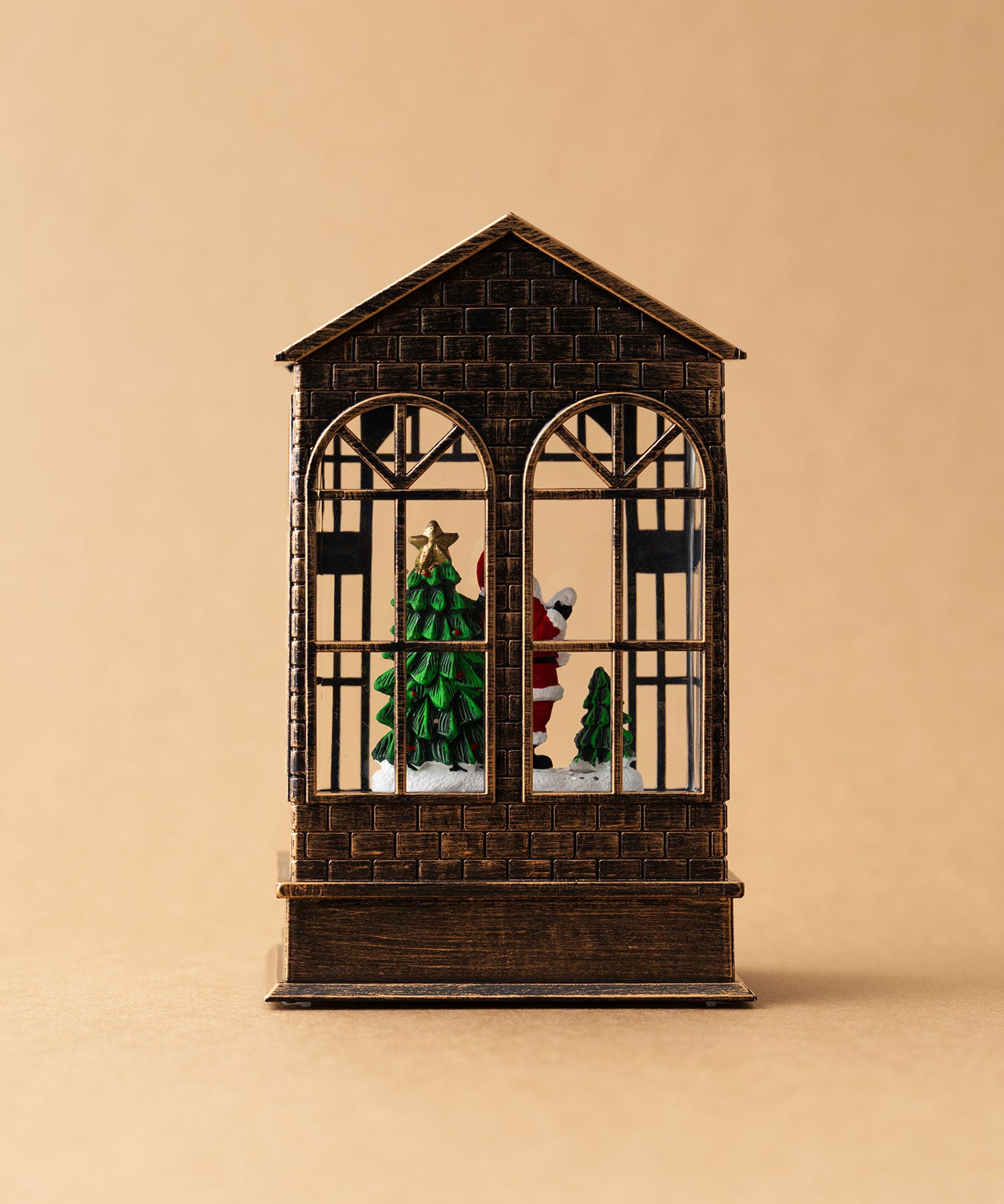 コンパクトなサイズで楽しめる、クリスマス仕様のハウス型スノードーム。